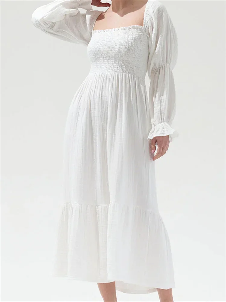 Women’s Autumn Long Beach Dress Long Sleeve Off Shoulder Solid Color/Floral Dress