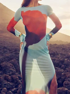 Women Tube Dress, Strapless Backless Hollowed Striped Patchwork Long Dress Clubwear