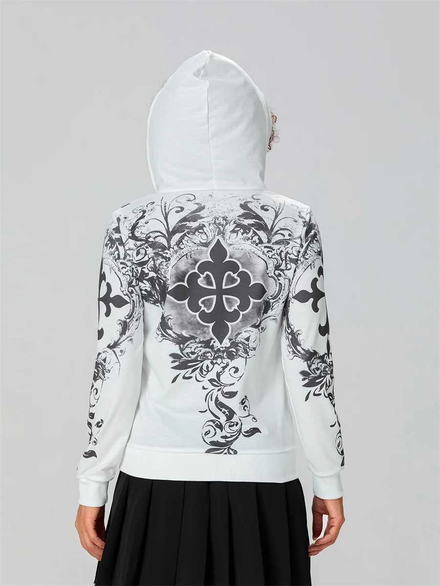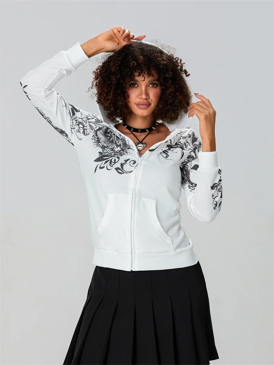 Women Hoodie, Long Sleeve Vintage Print Sweatshirt with Pockets for Street Casual