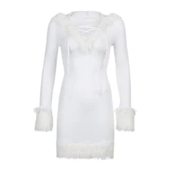 Women’s Dress, Plush Hem Splicing Frenulum V-neck Hooded Skirt