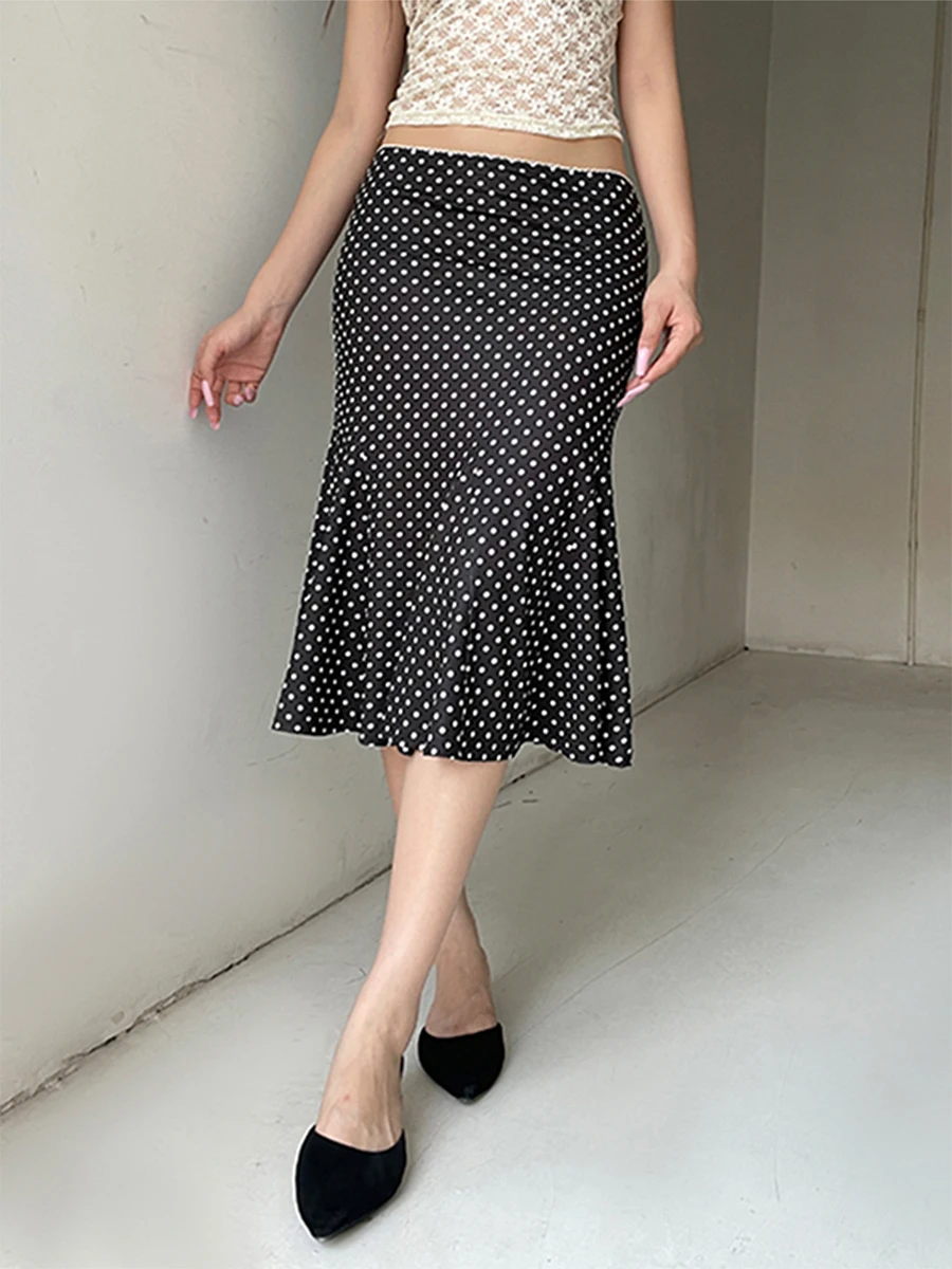 Women's Fashion Midi Skirts Dot Print Low Waist Skirts Spring Summer Casual Skirts